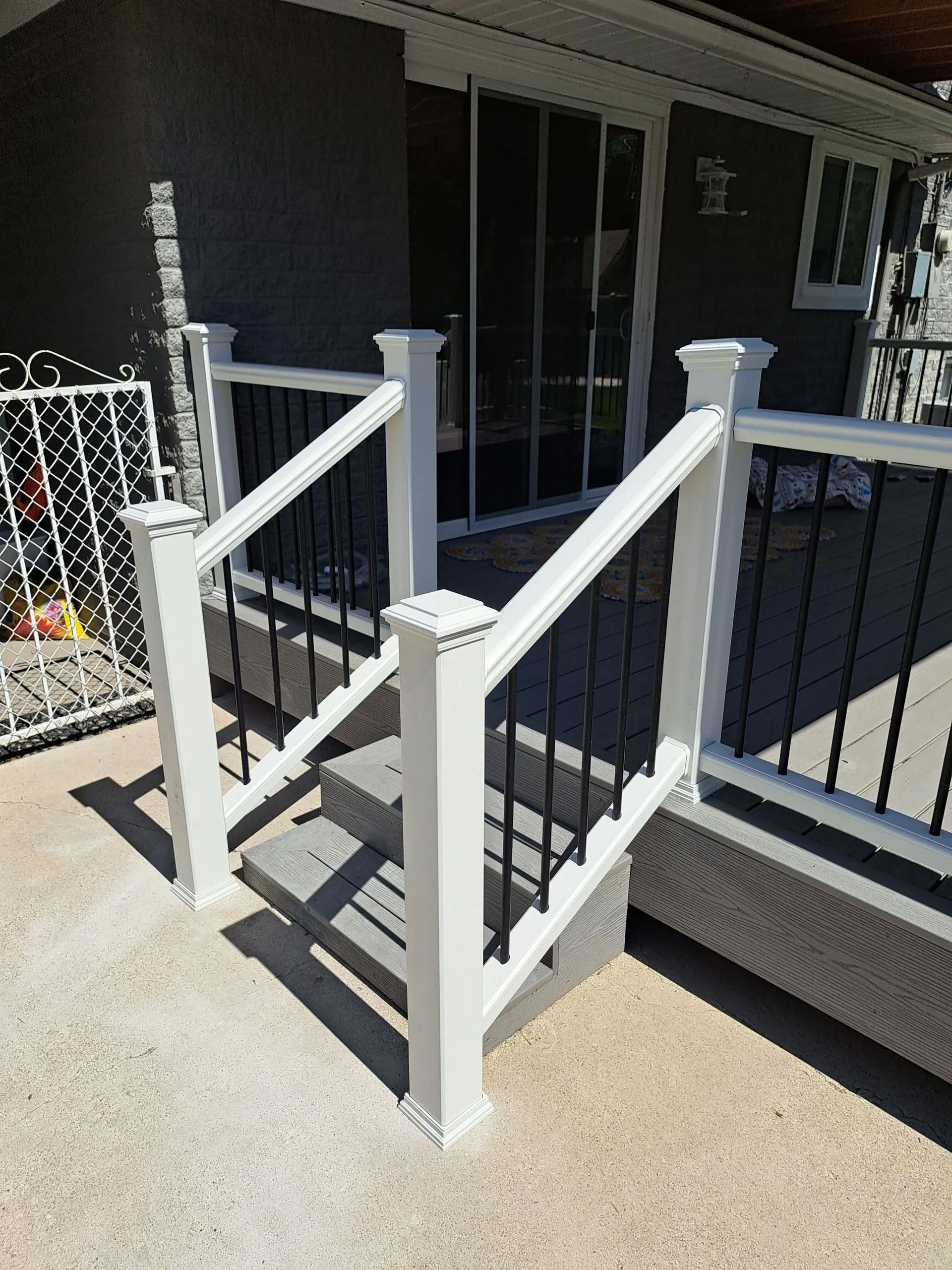 Installation and replacement of sturdy railings, including railings and modern metal safety rails, ideal for decks, porches, stairways, and elevated outdoor areas.