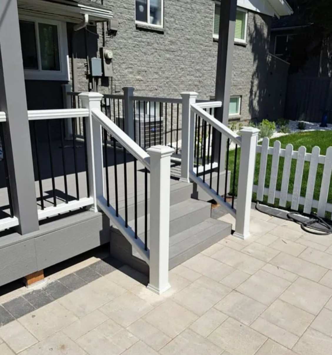 Installation and replacement of sturdy railings, including railings and modern metal safety rails, ideal for decks, porches, stairways, and elevated outdoor areas.